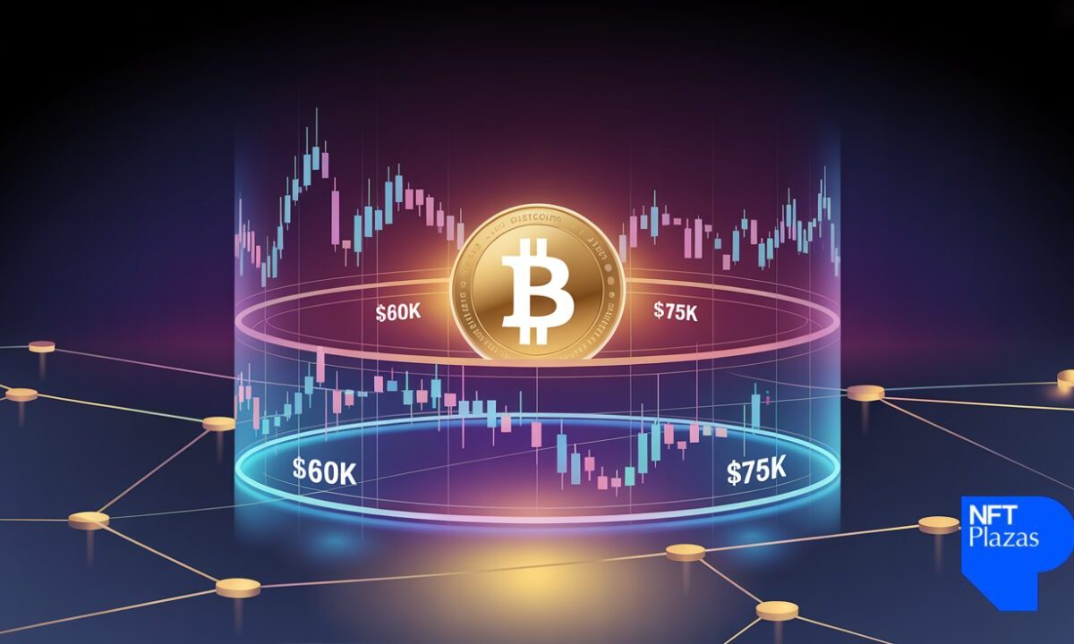 Bitcoin consolidates between $60K and $75K for several months before breaking higher.